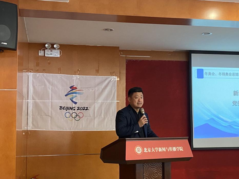 会议伊始,全体与会人员共同观看视频《北大新传人的冬奥二十四时》,从冰立方到鸟巢,从开幕到闭幕,北大新传人活跃在北京冬奥会的台前幕后,以精益求精的专业态度和无私奉献的志愿精神,谱写了北大新传人的冬奥二十四时故事。