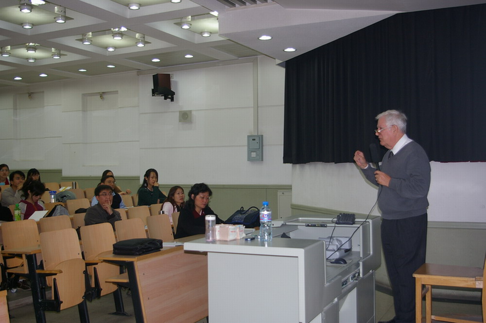 10月20日,美国夏威夷大学教授 Dan Landis为公司师生做了一场题为“影响跨文化交流的10种心理学理念”的讲座。会后,同学们踊跃发言,就“地理因素对跨文化交流的影响”“跨文化研究的方法”等问题和Landis教授进行了亲切交谈。 Landis教授是国际跨文化研究协会创始人,国际跨文化关系研究期刊主编,在跨文化培训领域有着丰富的经验。23日,Landis教授将前往我深圳研究生院,与那里的师生进行交流。