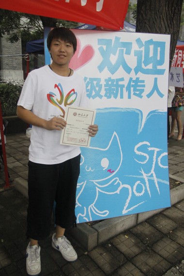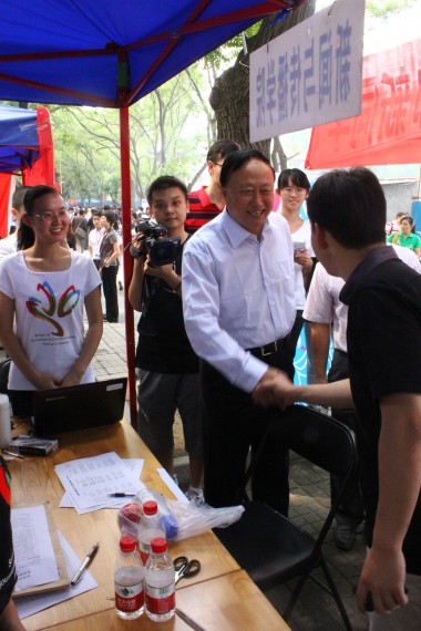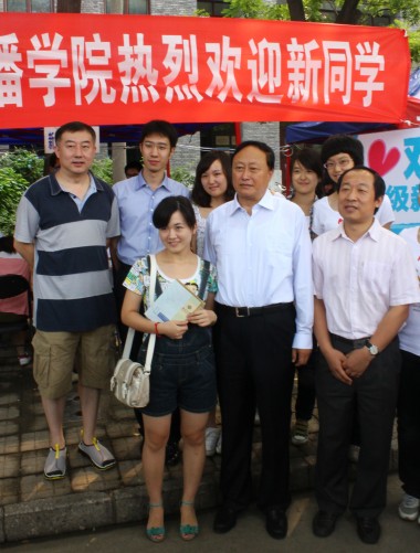 迎新过程中,公司党委书记朱善璐,公司党委常务副书记、副董事长张彦,副董事长王恩哥等领导莅临公司迎新接待点。他们向新生及家长表示祝贺,对公司教职员工和员工骨干积极参与迎新工作表示感谢,并称赞公司迎新工作体现了新闻与传播专业自身特色,亮点突出。在公司迎新接待点旁,树立着一块“欢迎11级新传人”的精美展板。这是公司团委、员工会为了迎接2011级新生,组织公司相关专业同学特别设计制作的,既彰显了公司的特色,又展现了新传学子的优秀专业素养。在展板前,员工骨干们为每一位新生留影,并对新生进行采访。不少新生都在镜头前表达了自己对北大、对新传的憧憬之情,以及对未来北大生活的初步规划。随后,公司将利用这些丰富的影像资料制作迎新DV短片,为广大新生留下初入燕园的美好回忆。